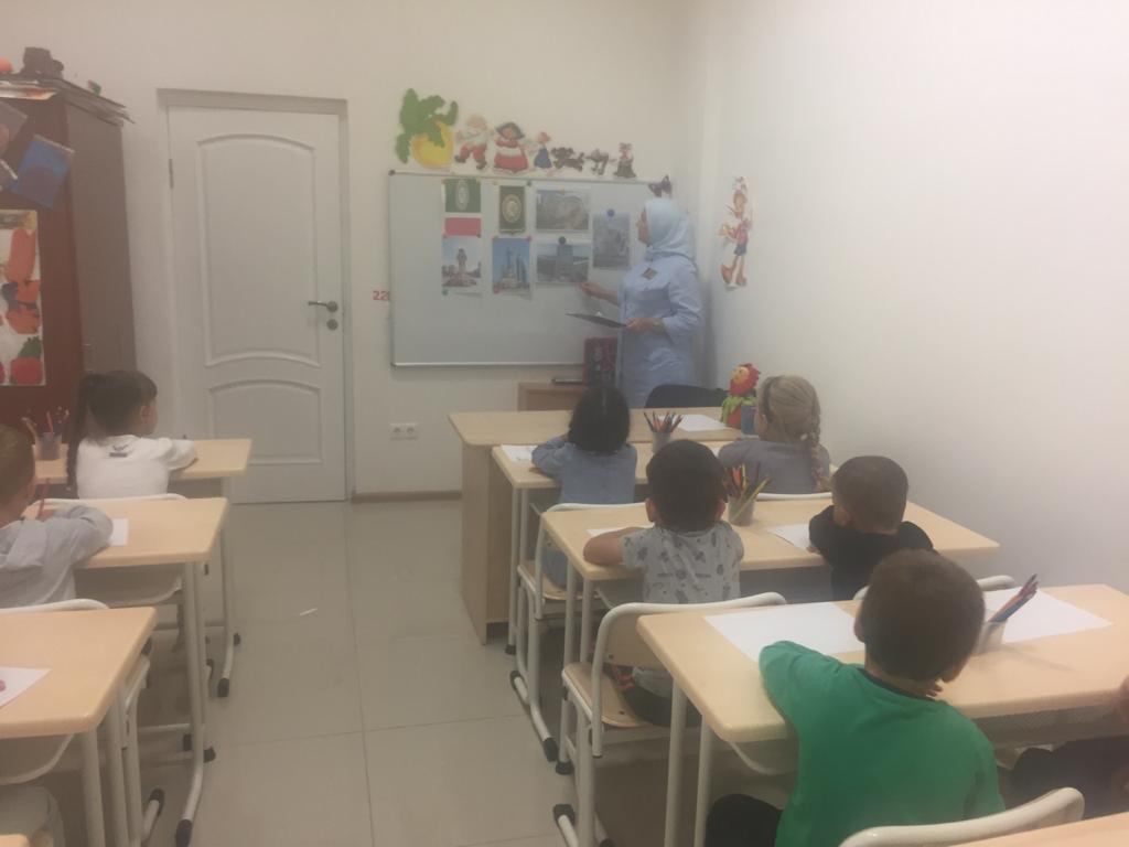 В старших и средней группах проведены тематические беседы: "Сияй мой край родной", "Моя республика", "Достойный путь". В старшей группе"Звёздочки" социальный педагог Чапаева М.Р., провела занятие на тему"Моя Родина-Чечня".