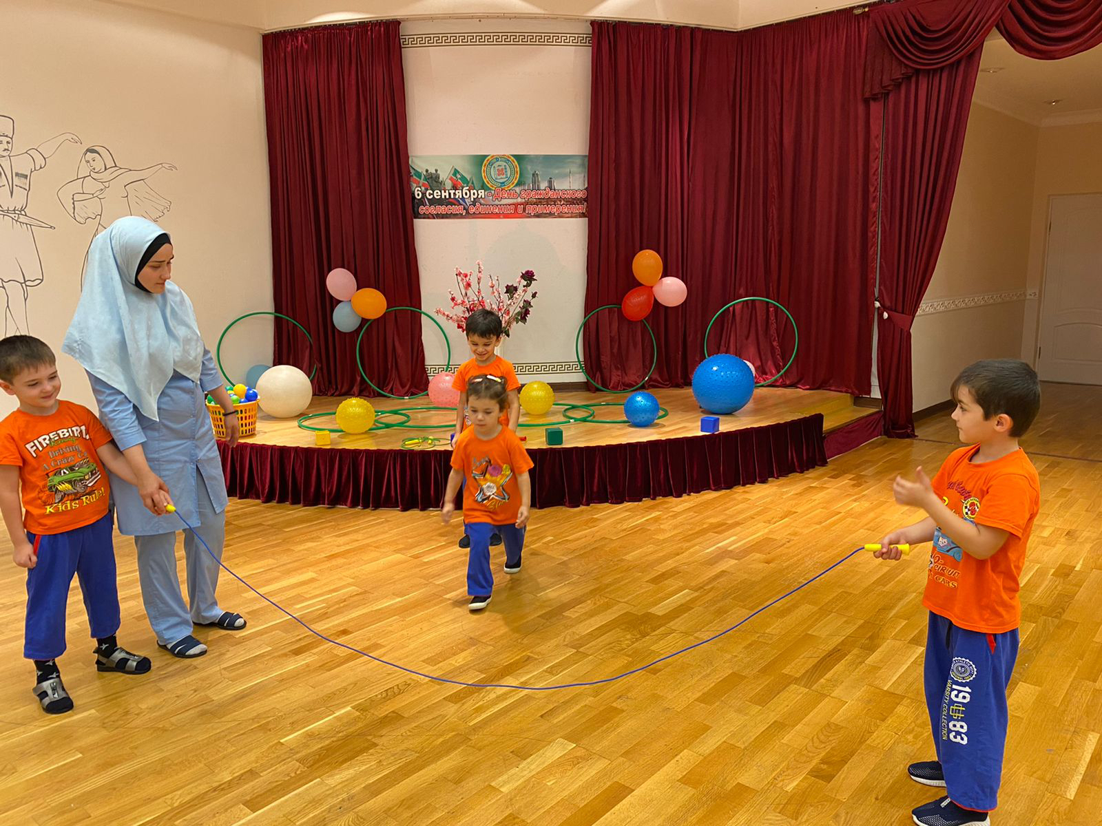 В старшей группе "Зайчата", инструктор по ФК Умханова М.А. провела спортивную эстафету, приуроченую к празднованию Дня Чеченской Республики.