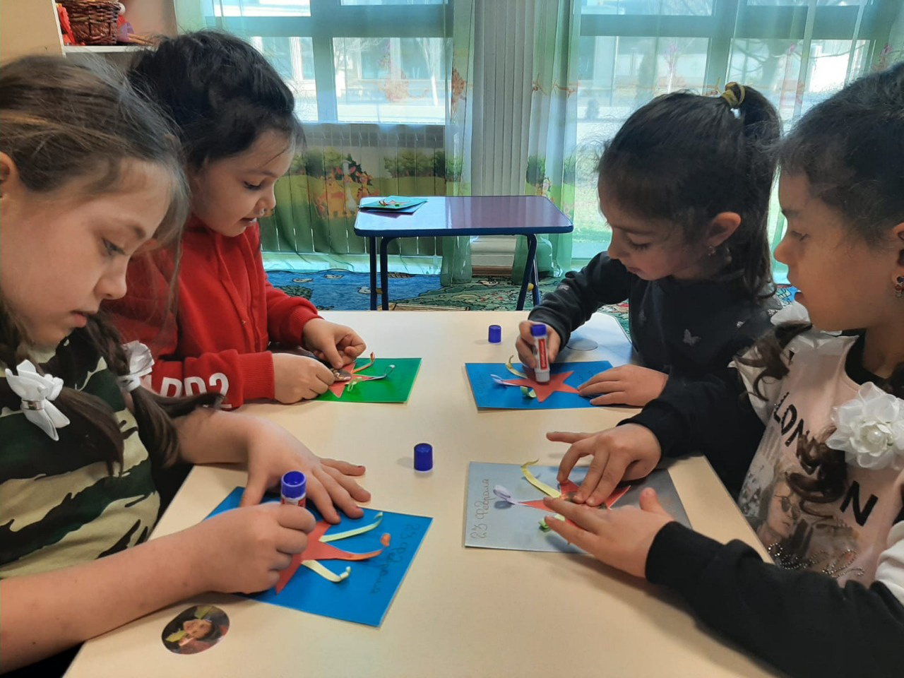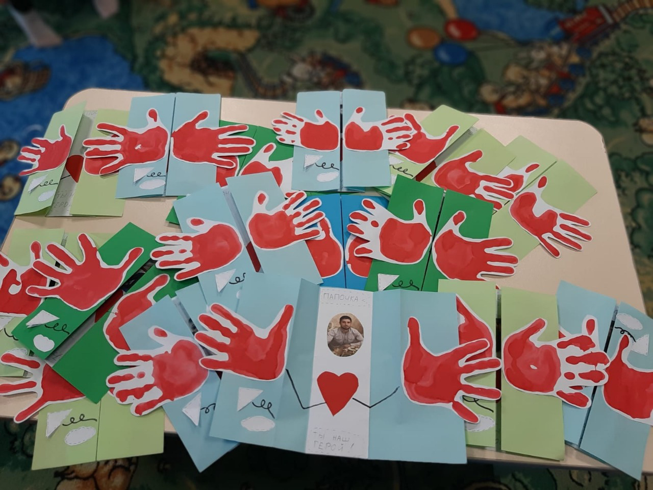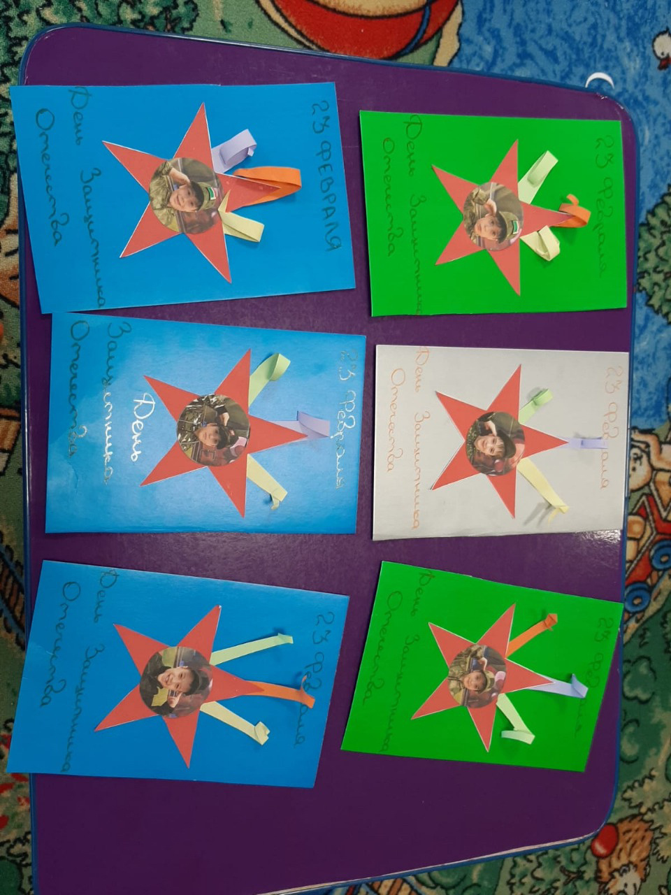 Каждый год в нашем садике проходит тематическая неделя к празднику "День Защитника Отечества". В течение недели во всех возрастных группах проводятся различные мероприятия: чтение художественной литературы, беседы, рассматривание иллюстраций по теме, просмотр слайдов, отгадывание загадок о военной технике, о разных родах войск, рисование, лепка по теме. С большим интересом воспитанники с помощью воспитателей изготавливают из разного материала подарки для любимых пап, дедушек, старших братьев. В этот раз дети сделали открытки.