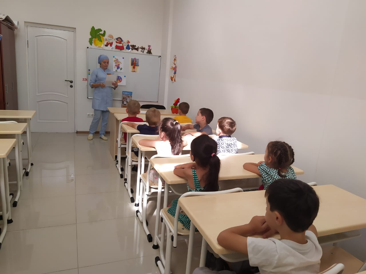 Ребята старшей группы «Непоседы» с интересом рассматривали иллюстрации на школьную тематику, отгадывали загадки, играли в игры «Продолжи фразу» и «Придумай слово на заданную букву». С детьми была проведена тематическая беседа «Скоро в школу», дети познакомились с Азбукой.