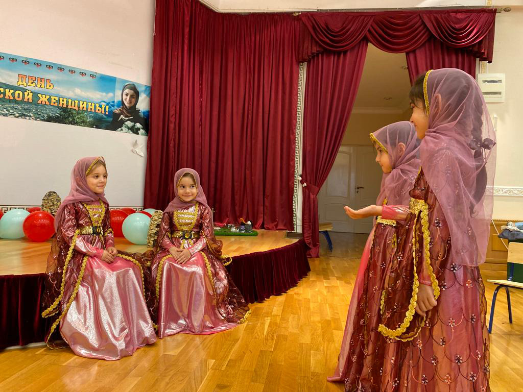 Были проведены беседы во всех группах на тему: «Нохчийн оьзда йо1». В старшей группе прошел утренник посвященный Дню Чеченской Женщины. Дети читали стихи, танцевали народный танец. Все пришли на утренник нарядные у всех детишек было праздничное, веселое настроение.